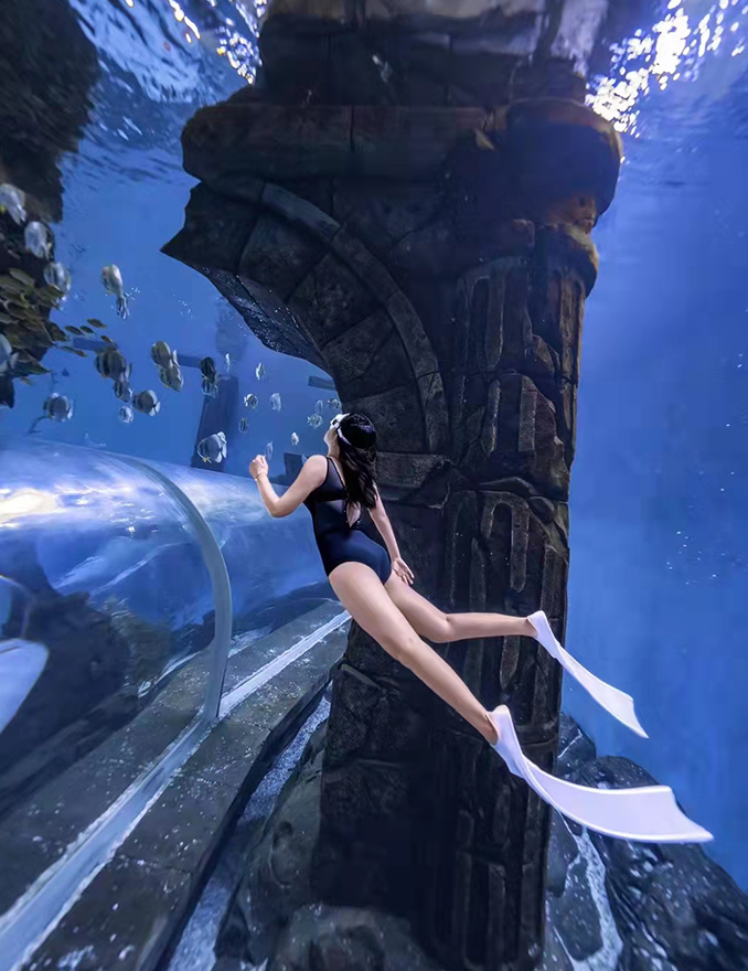 哈爾濱波塞冬全景水下隧道,擁有全國(guó)僅有的以展現(xiàn)充滿傳奇色彩的海神之戰(zhàn)為基礎(chǔ)的巨幕海底世界,全世界獨(dú)一無二,面向全國(guó)教練團(tuán)隊(duì)開放合作,水肺,自由潛,美人魚,水下拍攝,提供專業(yè)水下攝影場(chǎng)地。